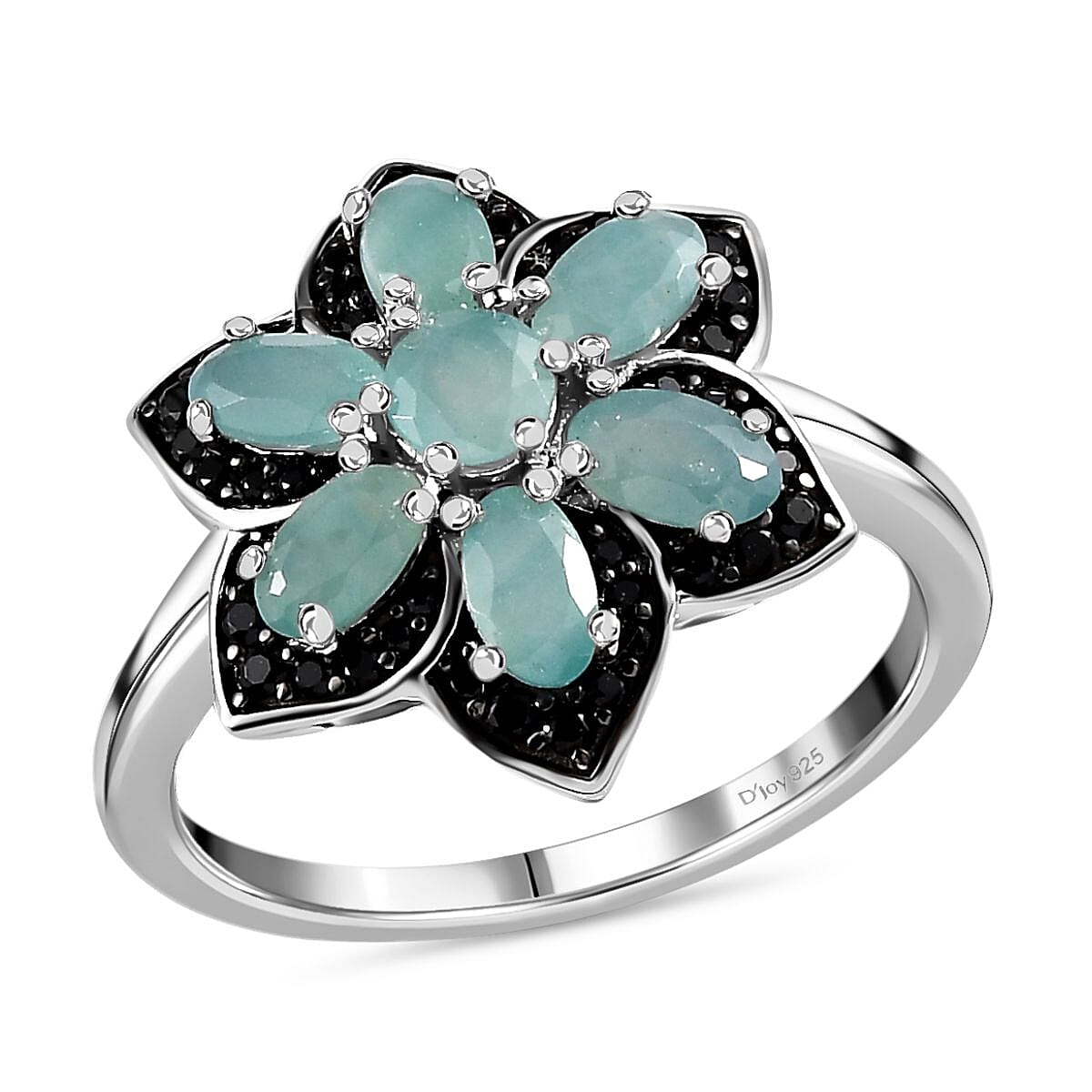 Grandidierite and Thai Black Spinel Floral Ring in Platinum Over Sterling Silver (Size 9.0) 2.15 ctw