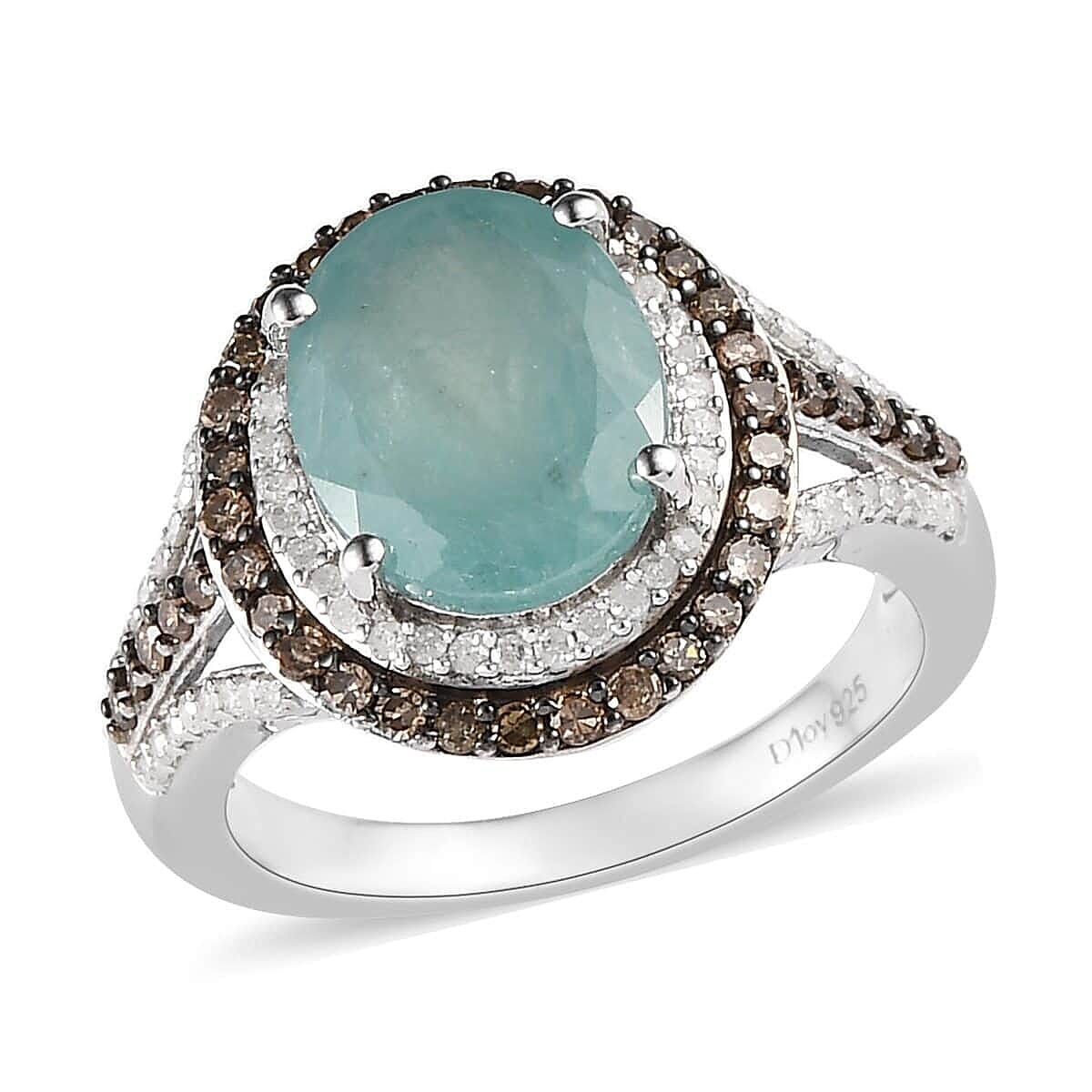 Grandidierite, Natural Champagne and White Diamond (0.70 cts) Double Halo Ring in Platinum Over Sterling Silver (Size 10.0) 4.15 ctw