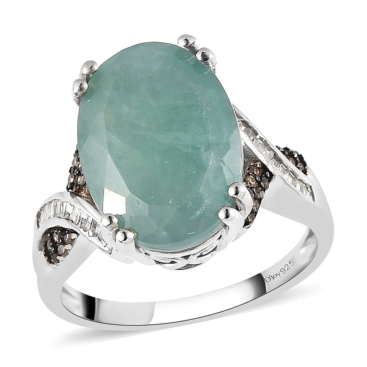 Elevate your elegance with our luxurious grandidierite ring in sterling silver. This captivating piece showcases an oval-shaped grandidierite, secured by dual prongs at its heart, highlighting its radiant blue-green allure. The infinity-style shank, enriched with natural champagne diamond rounds and white diamond baguettes, brings an eternal charm to this grandidierite infinity ring. Grandidierite, a true rarity in the gem world, makes this platinum plated sterling silver ring a treasure of unmatched brilliance and style.