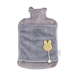 Gray 2L Hot Water Bag with Rabbit Faux Fur Cover