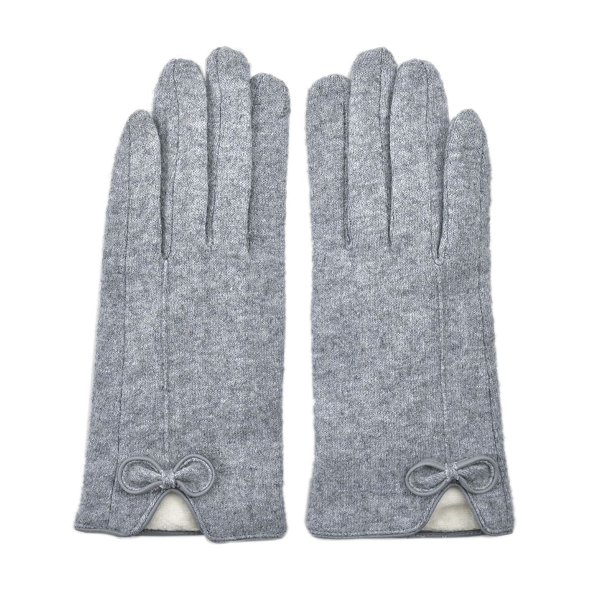 Gray Cashmere Warm Gloves with Bowknot and Equipped Touch Screen Friendly