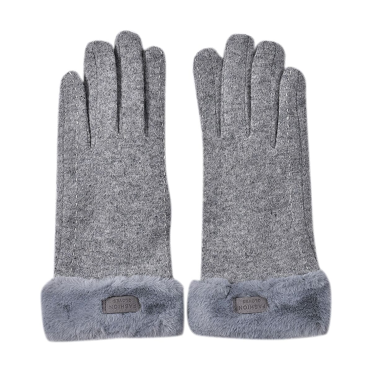 Gray Cashmere Warm Gloves with Faux Fur and Equipped Touch Screen Friendly