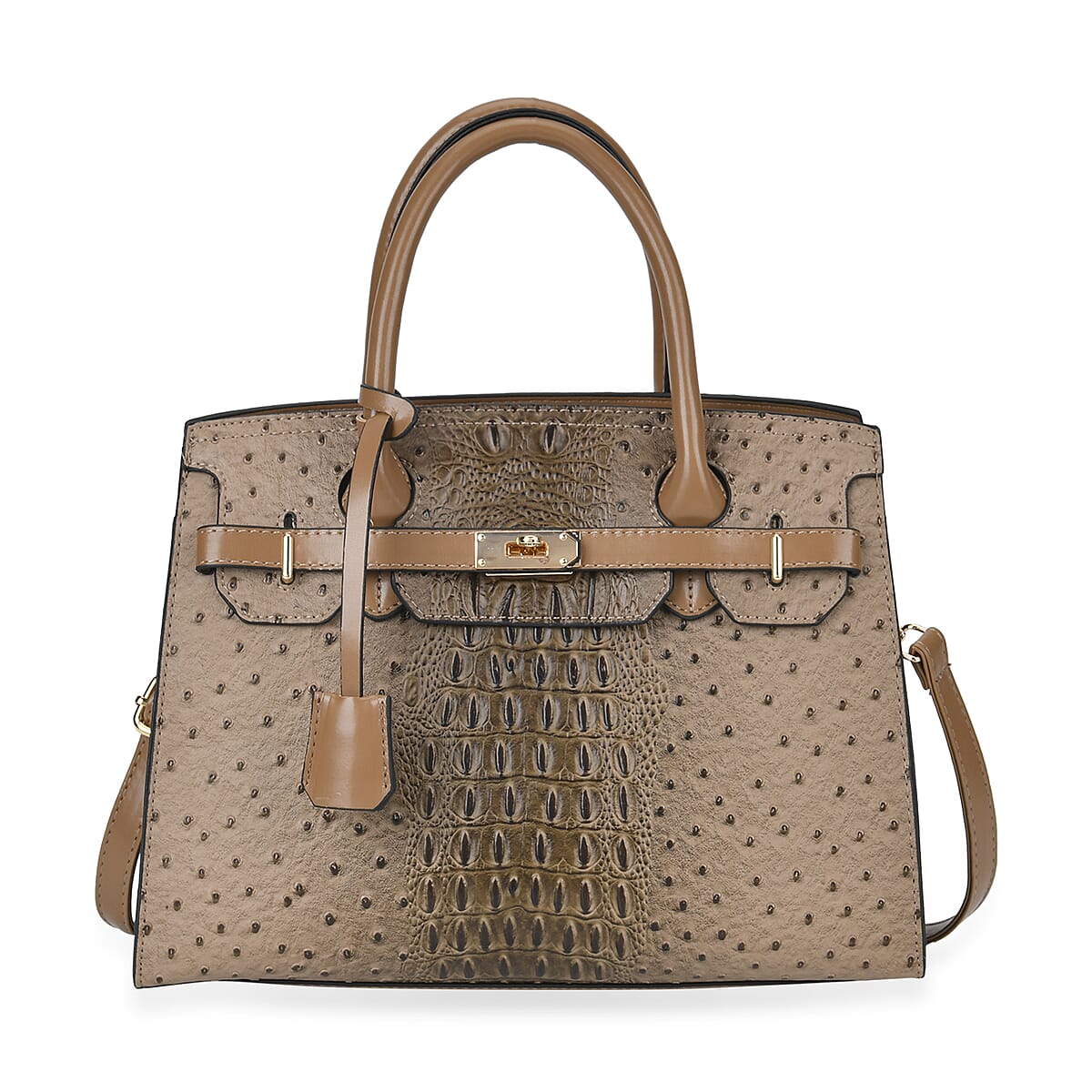 Gray Croco Embossed Faux Leather Tote Bag with Shoulder Strap