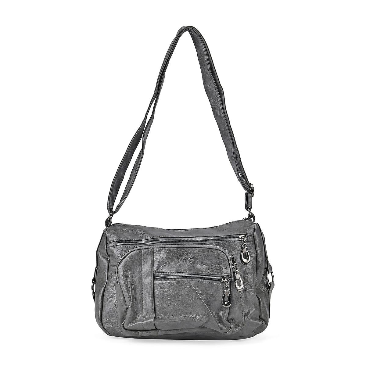 Gray Faux Leather Multi Pocket Crossbody Bag with Adjustable Shoulder Strap