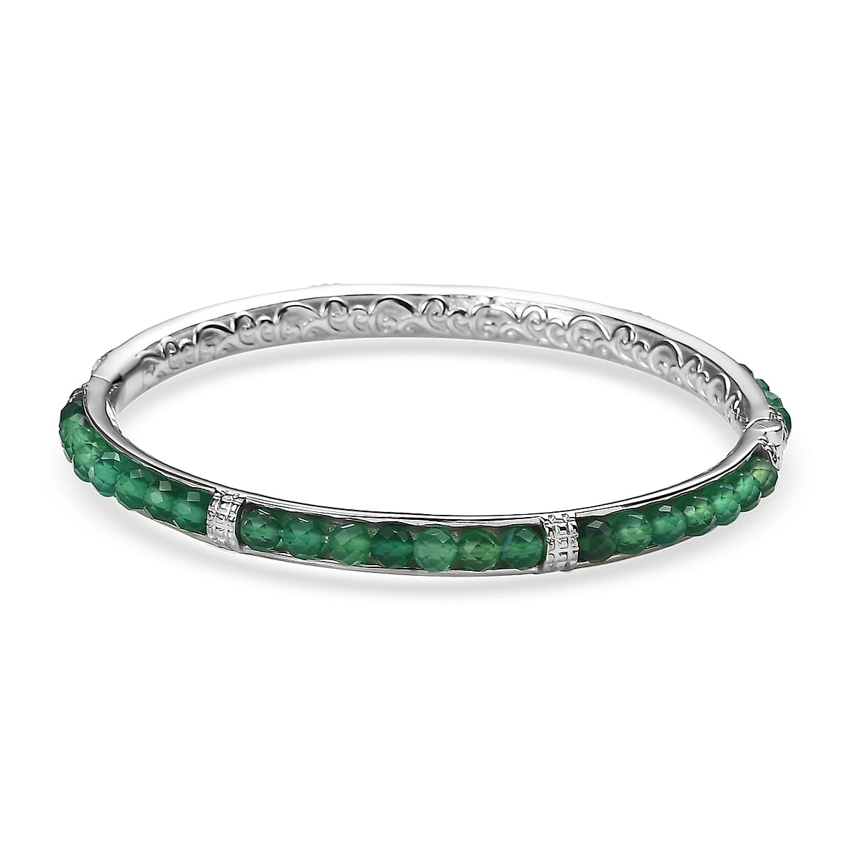 Green Agate 22.00 ctw Bangle Bracelet in Stainless Steel (7.25 In)