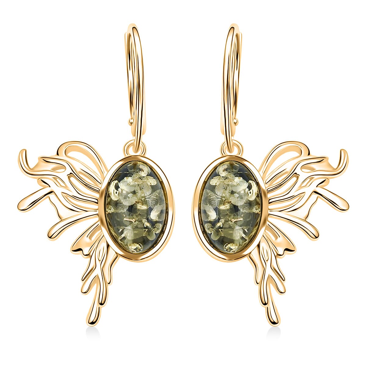 Green Amber Earrings in 14K YG Over Sterling Silver
