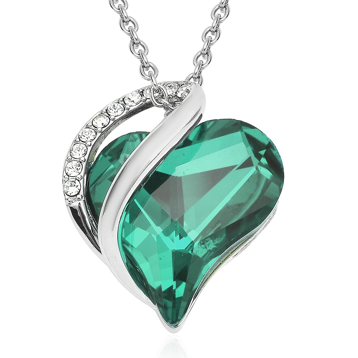 Green and White Austrian Crystal Heart Pendant Necklace 18 Inches in Silvertone and Stainless Steel