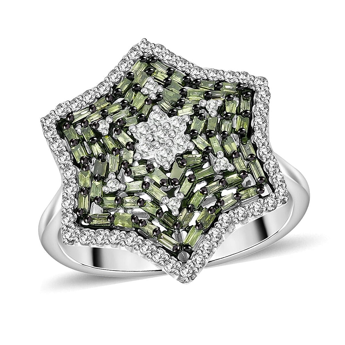 Green and White Diamond 1.00 ctw Star Ring in Platinum Over Sterling Silver (Size 8.0)