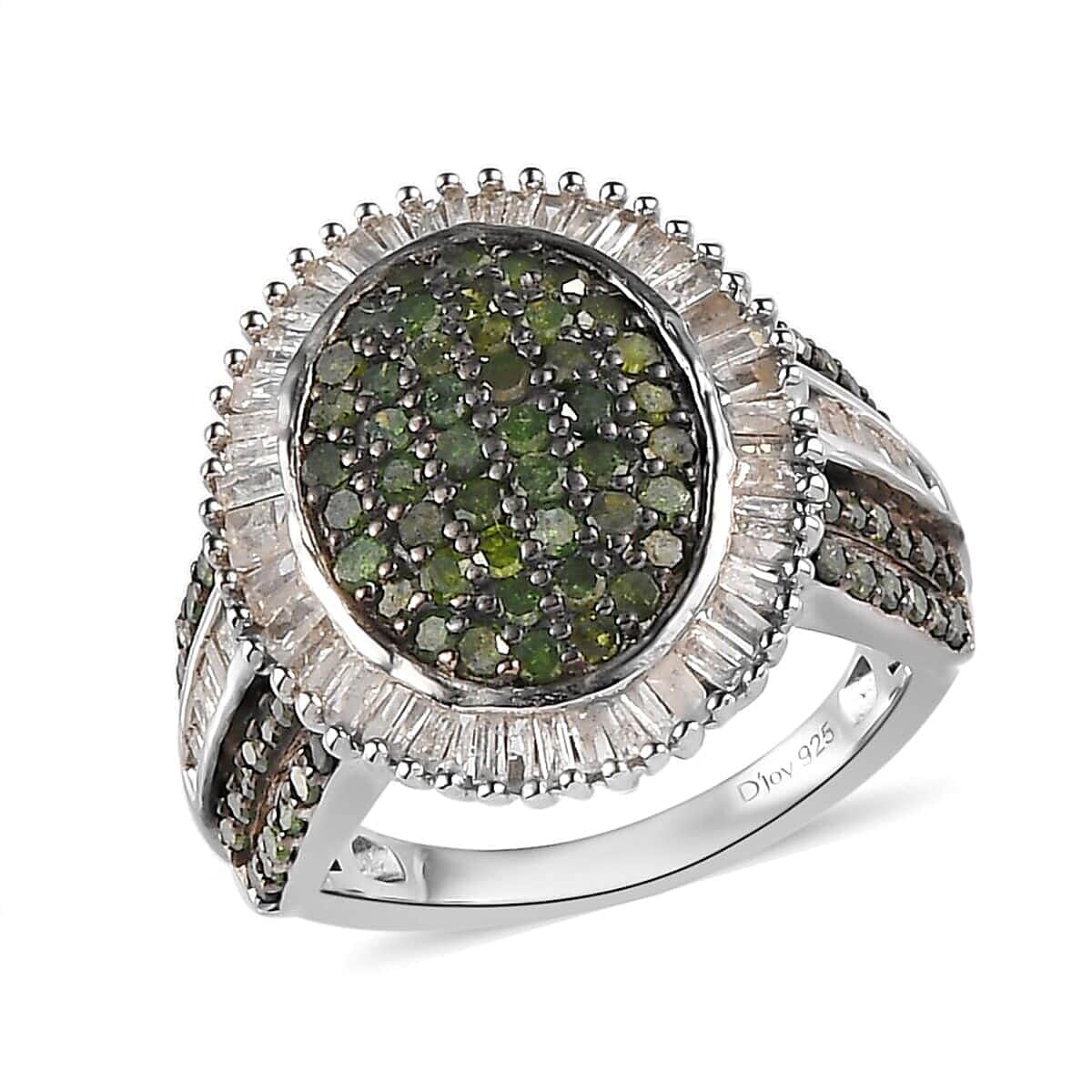 Green and White Diamond Cocktail Ring in Platinum Over Sterling Silver (Size 6.0) 2.00 ctw