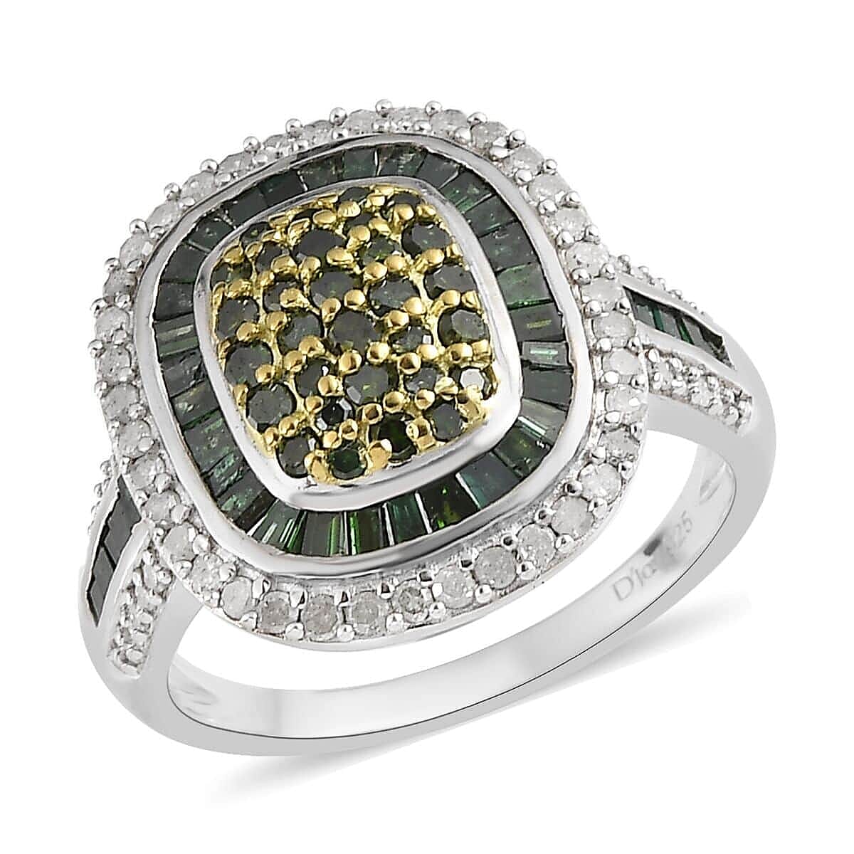 Green and White Diamond Cocktail Ring in Platinum Over Sterling Silver (Size 8.0) 1.50 ctw