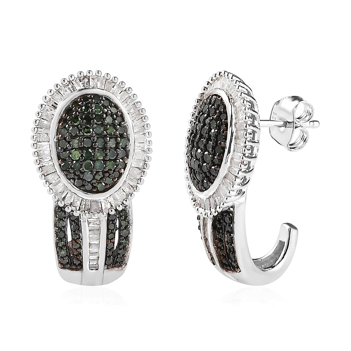 Green and White Diamond J-Hoop Earrings in Platinum Over Sterling Silver 2.00 ctw