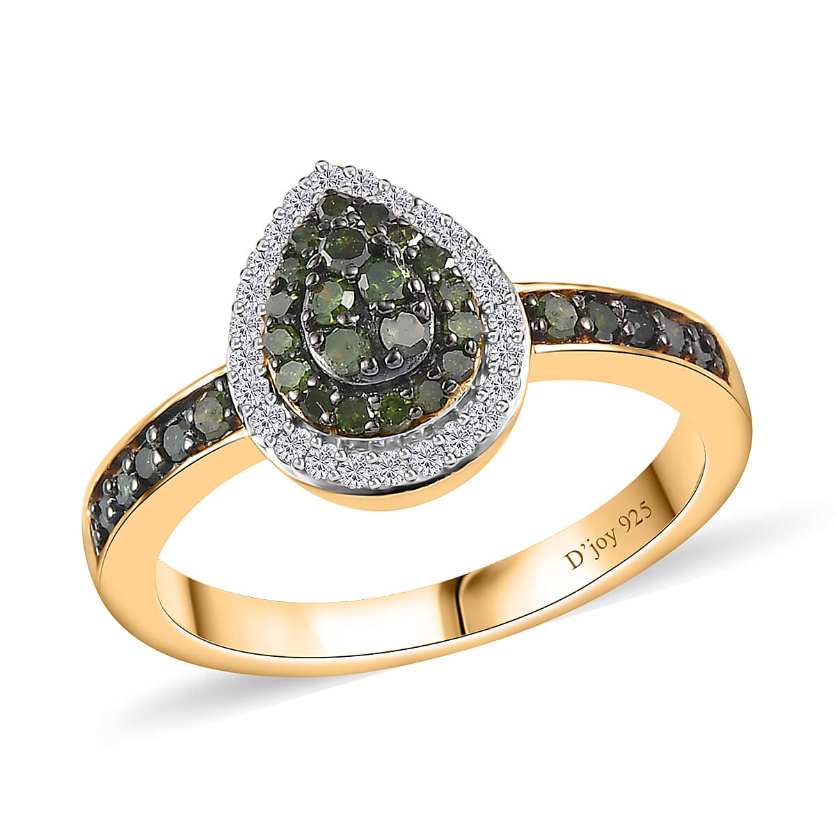 Green and White Diamond Pear Shape Ring in Vermeil Yellow Gold Over Sterling Silver (Size 9.0) 0.50 ctw