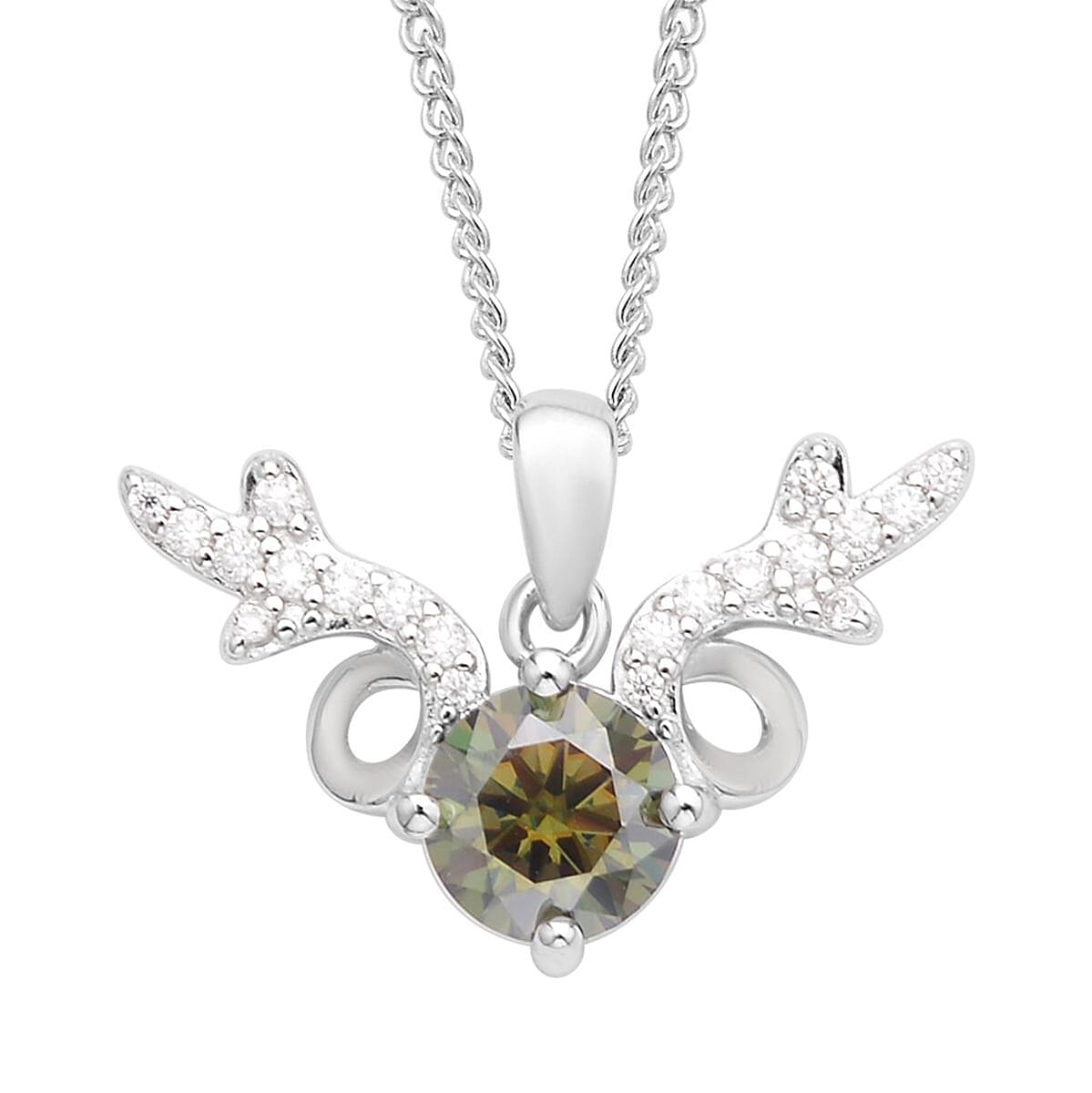 Green and White Moissanite Deer Antler Pendant Necklace 18 Inches in Rhodium Over Sterling Silver 1.15 ctw