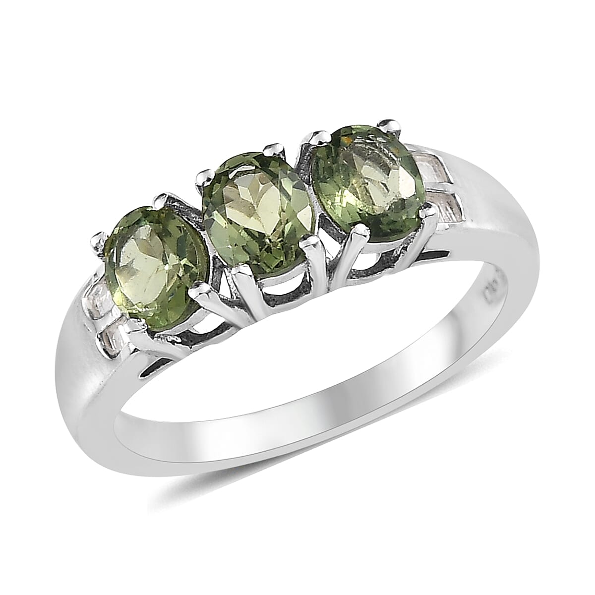 Green Apatite and Diamond Ring in Platinum Over Sterling Silver 1.15 ctw