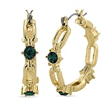 Green Austrian Crystal Paperclip Chain Hoop Earrings in Goldtone