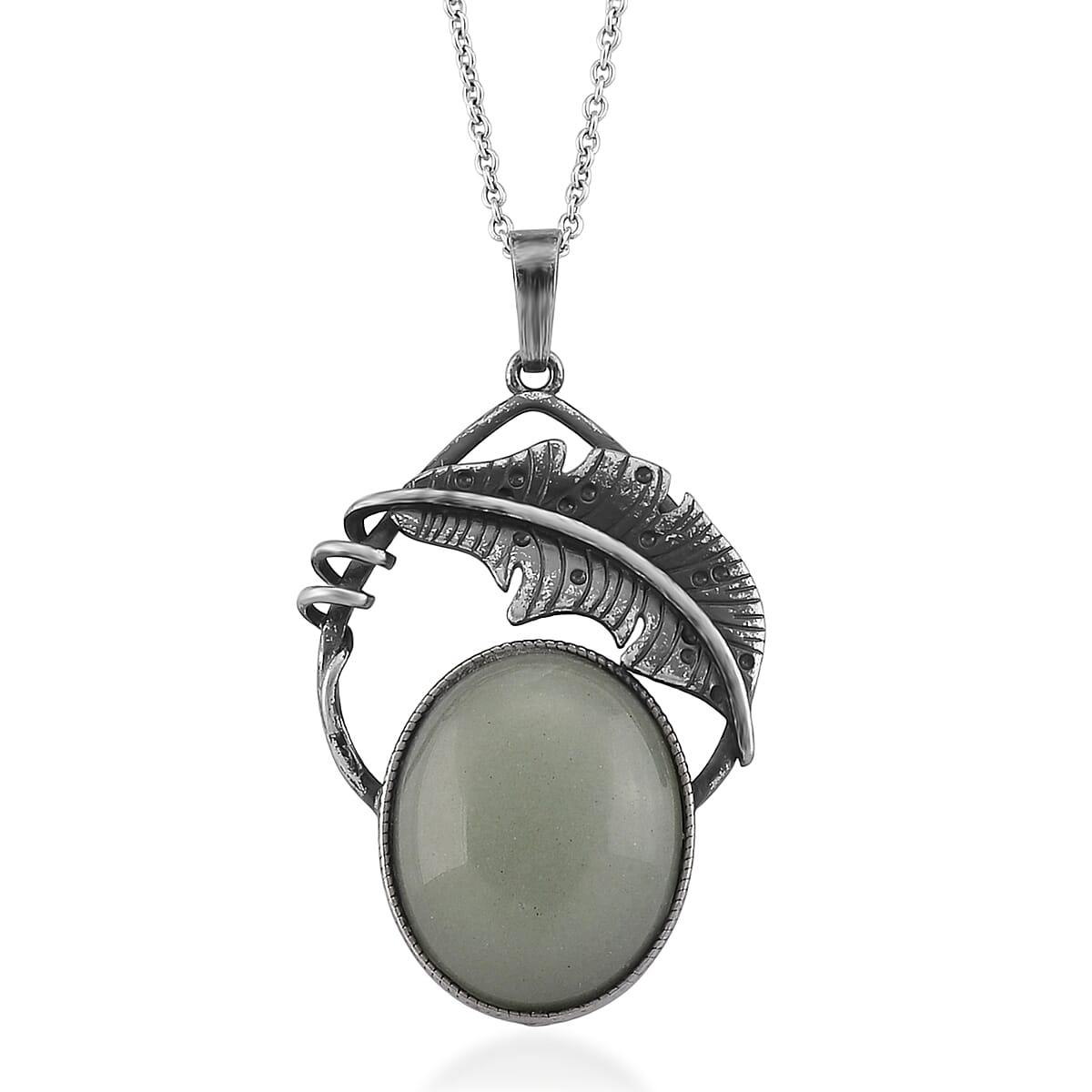 Green Aventurine 28.00 ctw Pendant in Silvertone with Stainless Steel Necklace 20 Inches