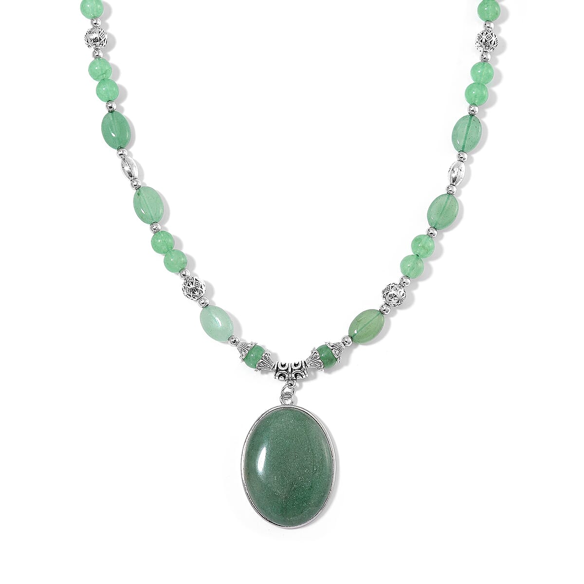 Green Aventurine 300.00 ctw Beaded Necklace in Silvertone 20 Inches