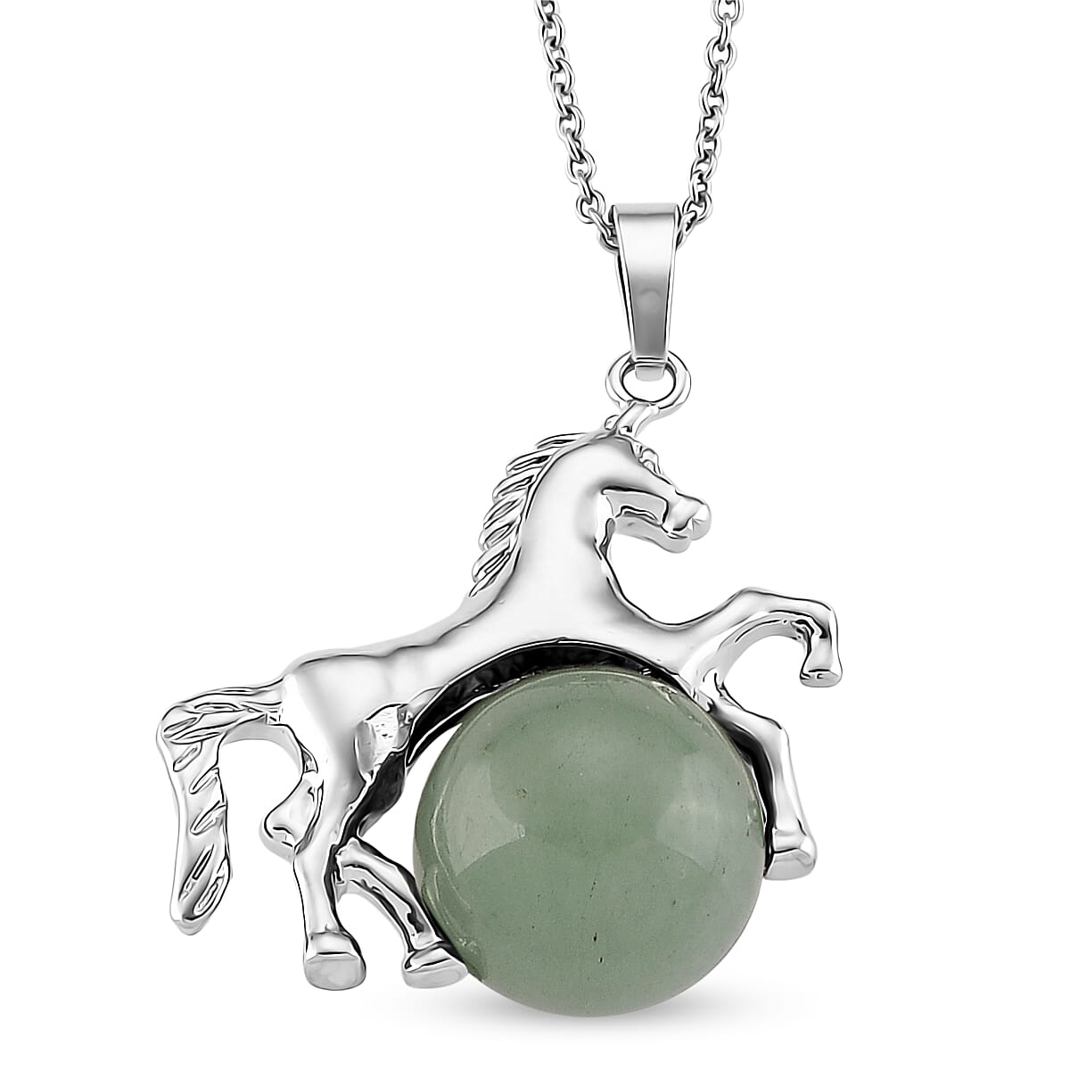 Green Aventurine 38.00 ctw Pendant in Silvertone with Stainless Steel Necklace 20 Inches