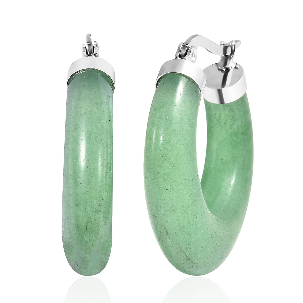 Green Aventurine 45.00 ctw Hoop Earrings in Stainless Steel