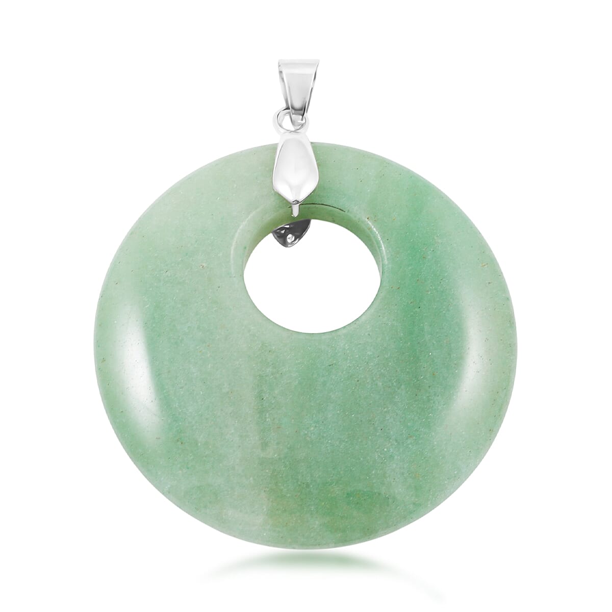 Green Aventurine 52.35 ctw Donut Pendant in Silvertone with Stainless Steel Necklace (20 Inches)