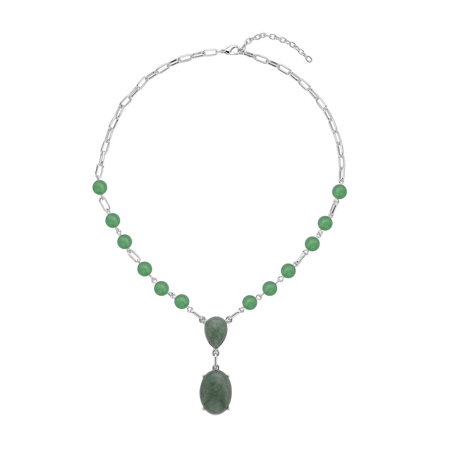 Green Aventurine 70.00 ctw Necklace in Silvertone 18-20 Inches