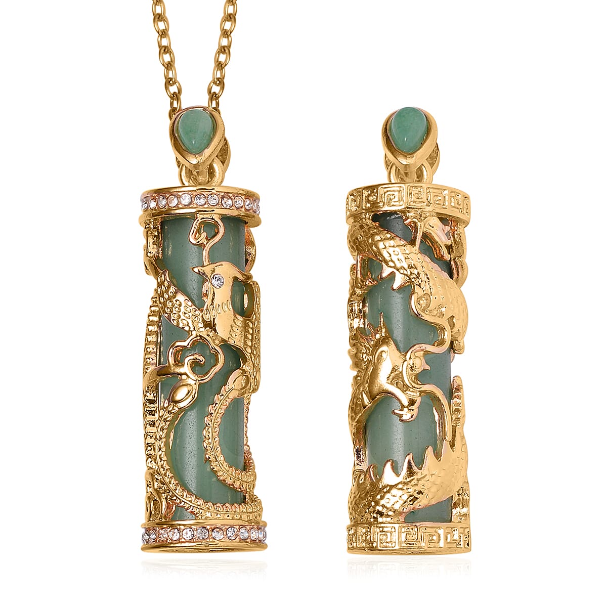 Green Aventurine and Austrian Crystal Set of 2 Eagle & Dragon Pendant Necklace 24 Inches in Goldtone 36.00 ctw