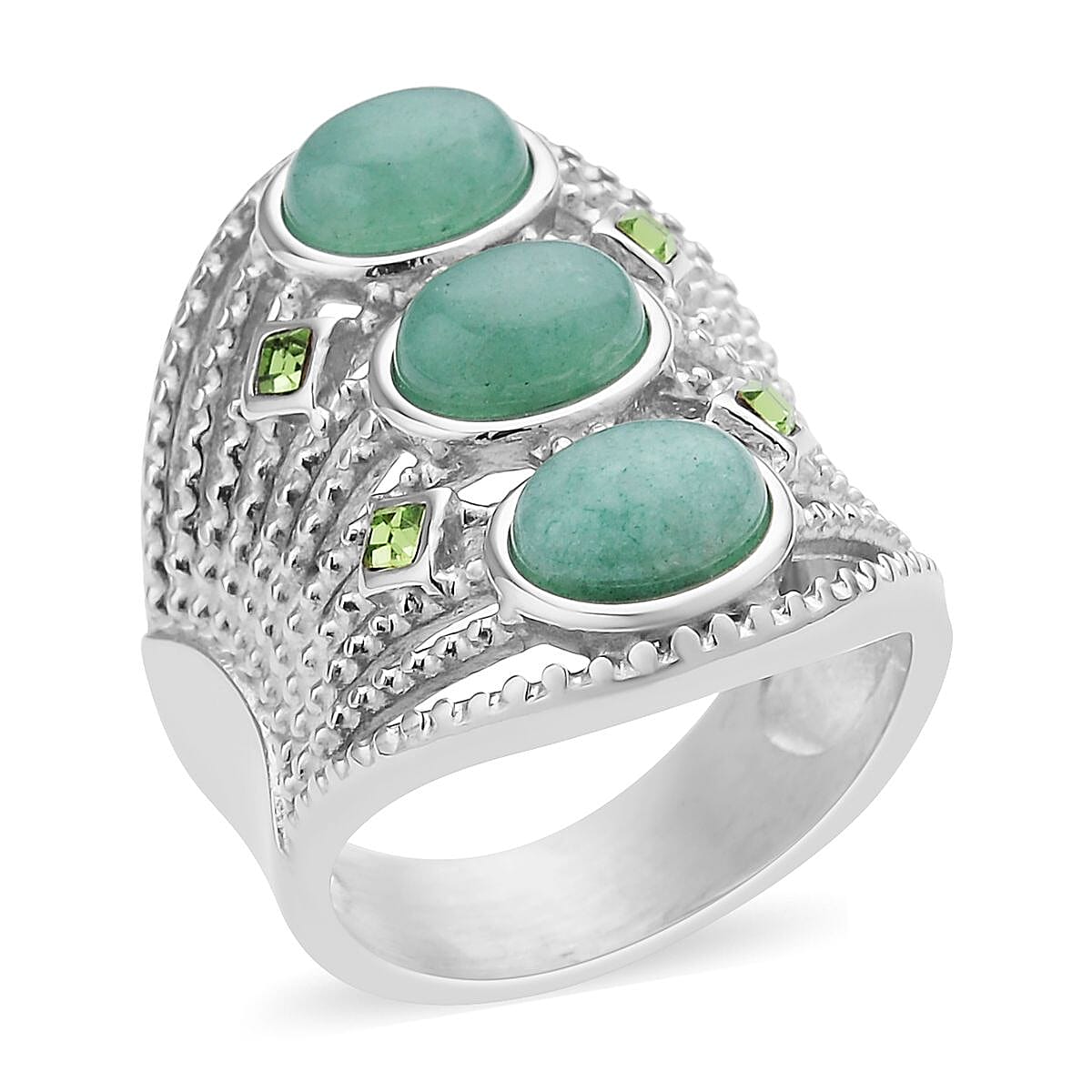 Green Aventurine and Neon Green Austrian Crystal Ring in Stainless Steel (Size 6.0) 30.00 ctw