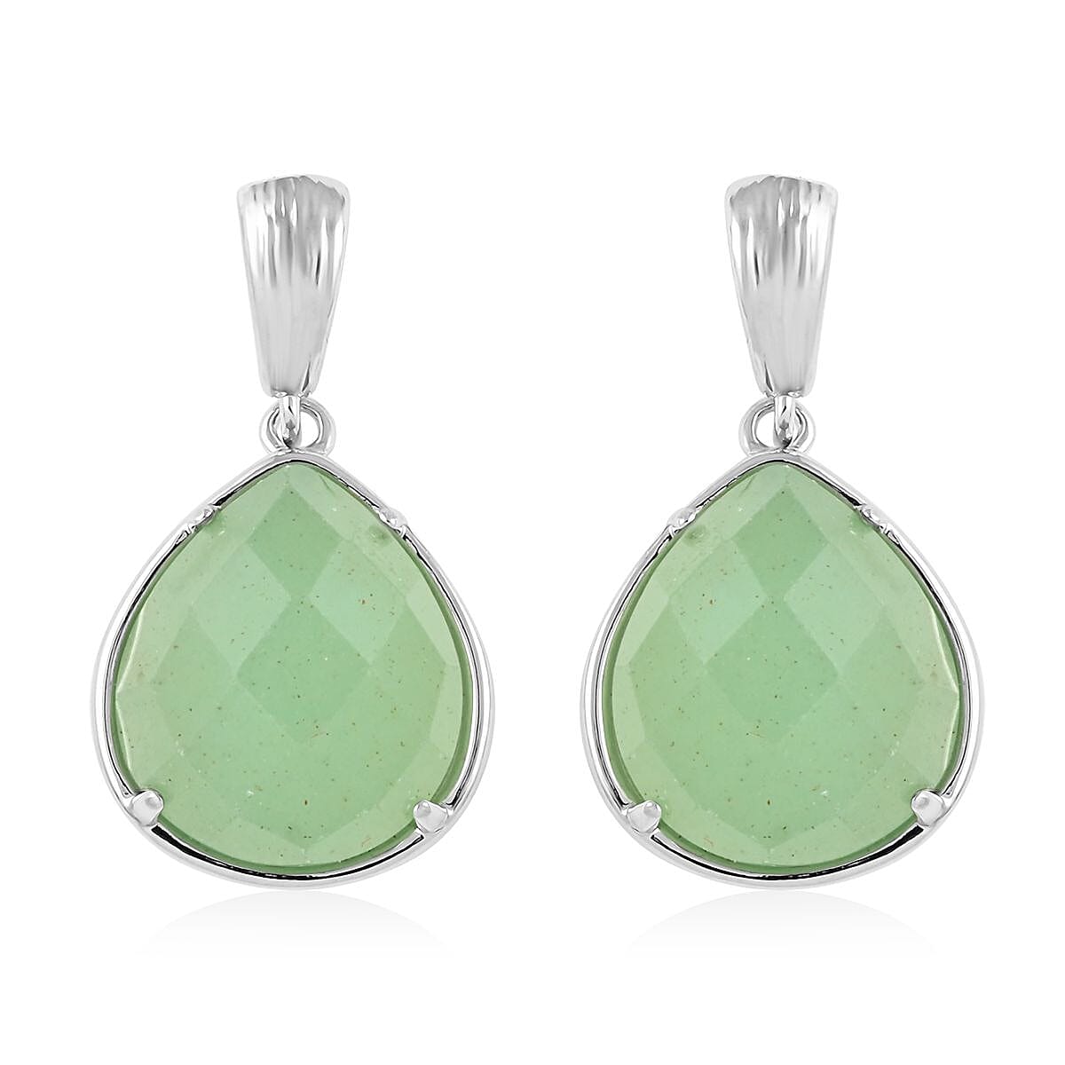 Green Aventurine Earrings in Rhodium Over Stainless Steel 17.00 ctw