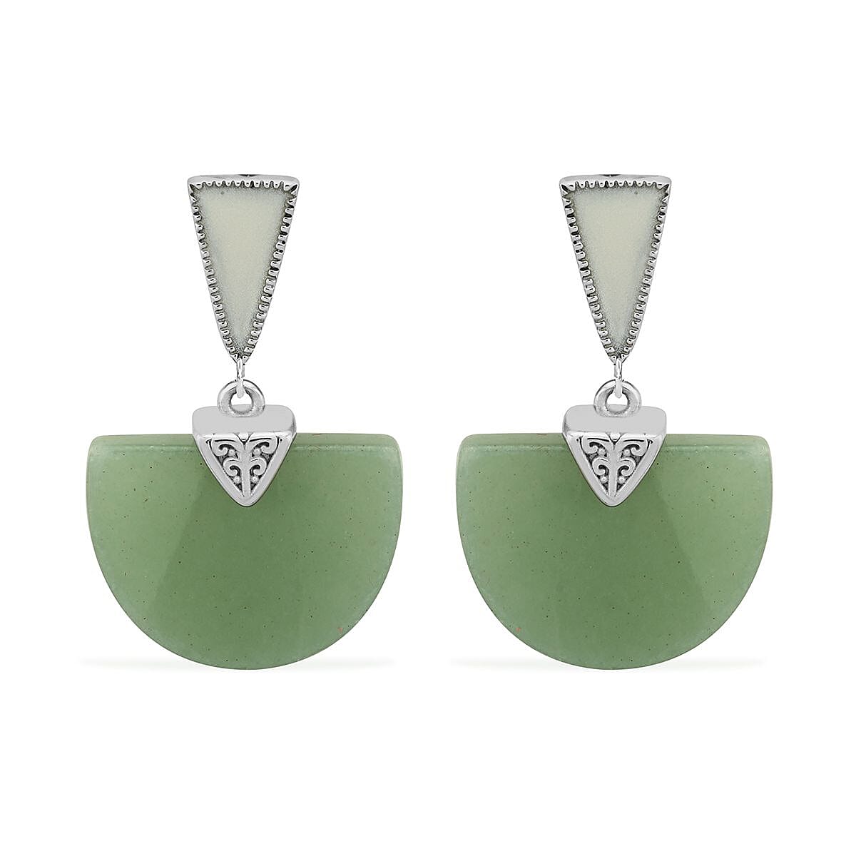 Green Aventurine, Enameled Earrings in Stainless Steel 17.50 ctw | Tarnish-Free, Waterproof, Sweat Proof Jewelry