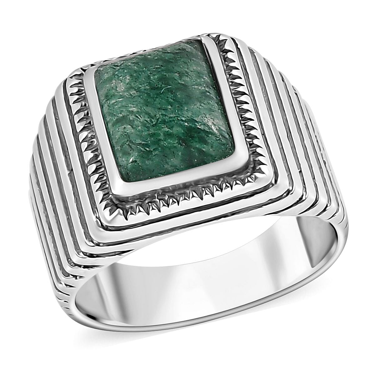 Green Aventurine Men's Ring in Sterling Silver (Size 10.0) 2.50 ctw