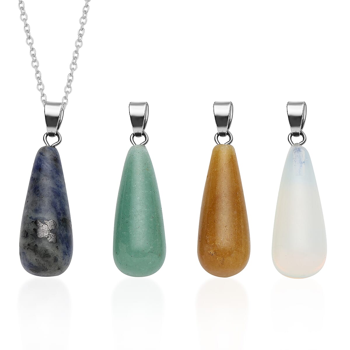 Green Aventurine, Sodalite, Opalite, Yellow Quartzite Set of 4 Pendants in Silvertone With Stainless Steel Chain 20 Inches 64.00 ctw