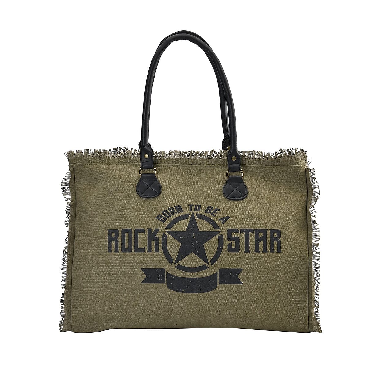 Green Color Canvas Tote Bag with Faux Leather Handle Strap