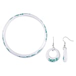 Green Color Ceramic Bangle Bracelet (8.50 In) and Earrings in Stainless Steel