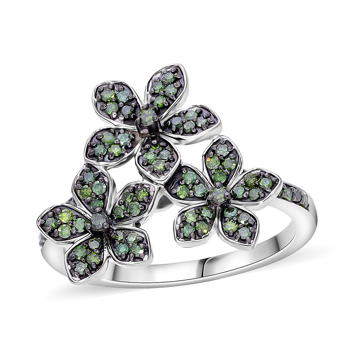 Green Diamond 0.33 ctw Floral Ring in Platinum Over Sterling Silver (Size 7.0)