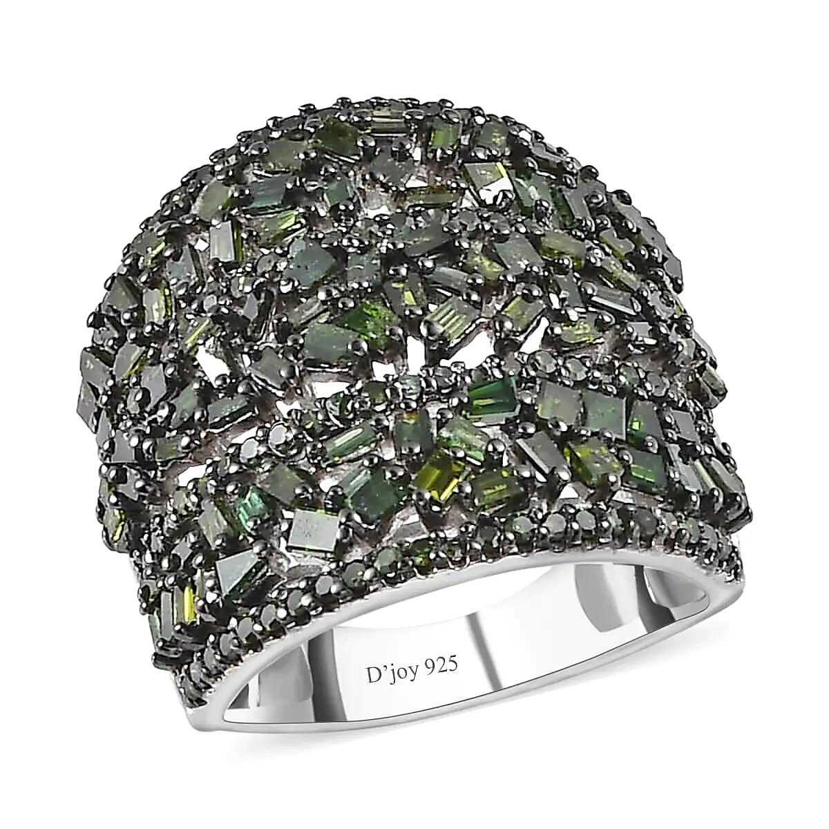 Green Diamond 2.00 ctw Cluster Ring, Rhodium And Platinum Over Sterling Silver Ring, Fancy Diamond Jewelry, Wide Diamond Wedding Bands
