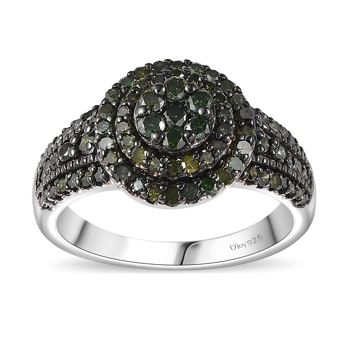 Green Diamond Cocktail Ring in Platinum Over Sterling Silver (Size 8.0) 1.00 ctw
