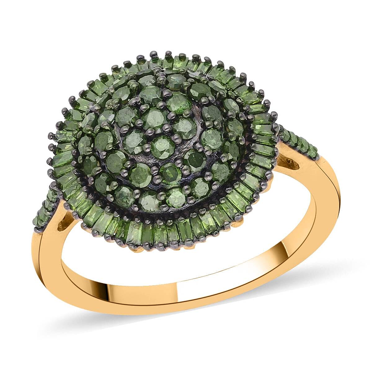 Green Diamond Cocktail Ring in Vermeil Yellow Gold Over Sterling Silver (Size 6.0) 1.00 ctw
