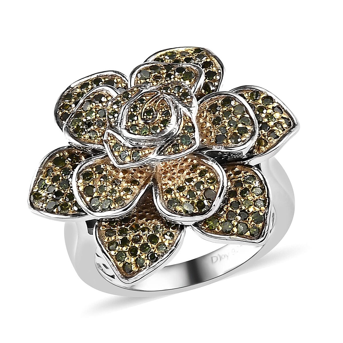 Green Diamond Floral Ring in Platinum Over Sterling Silver (Size 8.0) 1.00 ctw