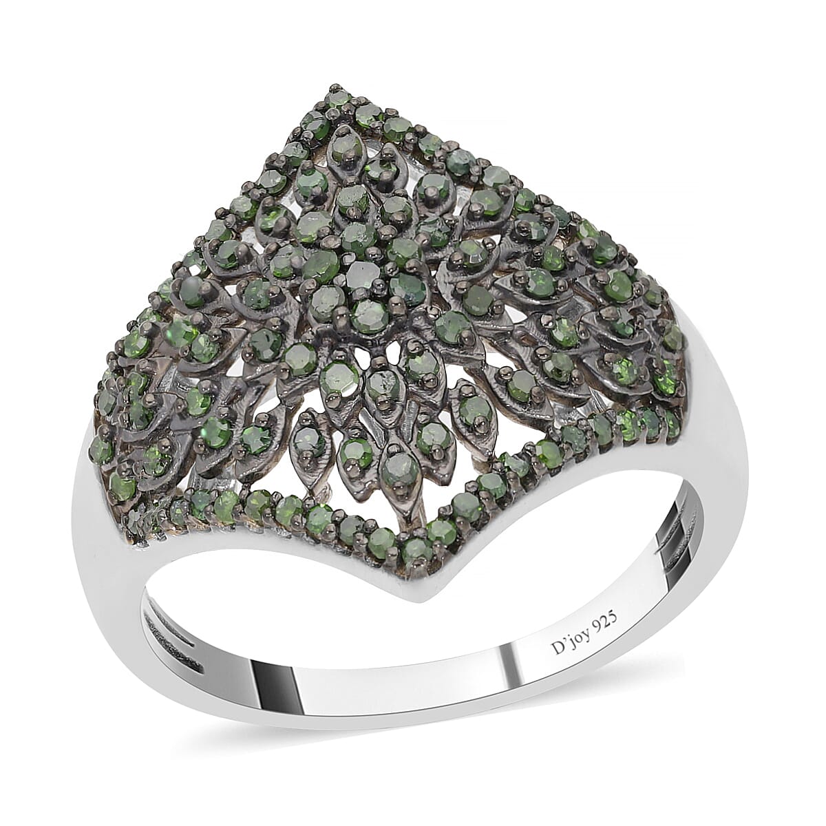 Green Diamond Floral Ring in Rhodium and Platinum Over Sterling Silver (Size 7.0) 0.50 ctw