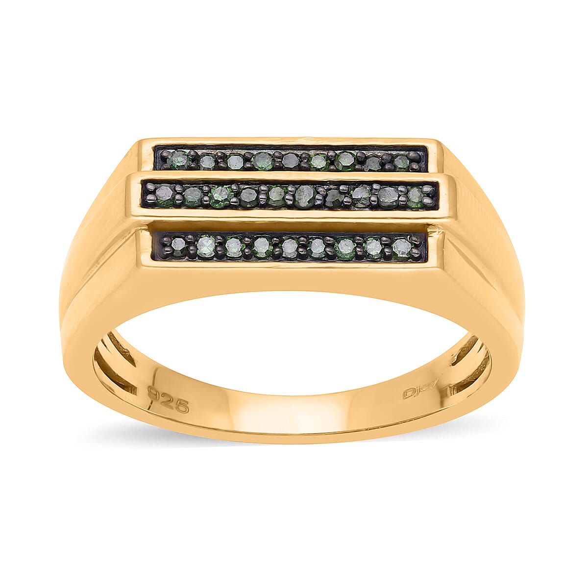 Green Diamond Men's Ring in Vermeil Yellow Gold Over Sterling Silver (Size 14.0) 0.25 ctw
