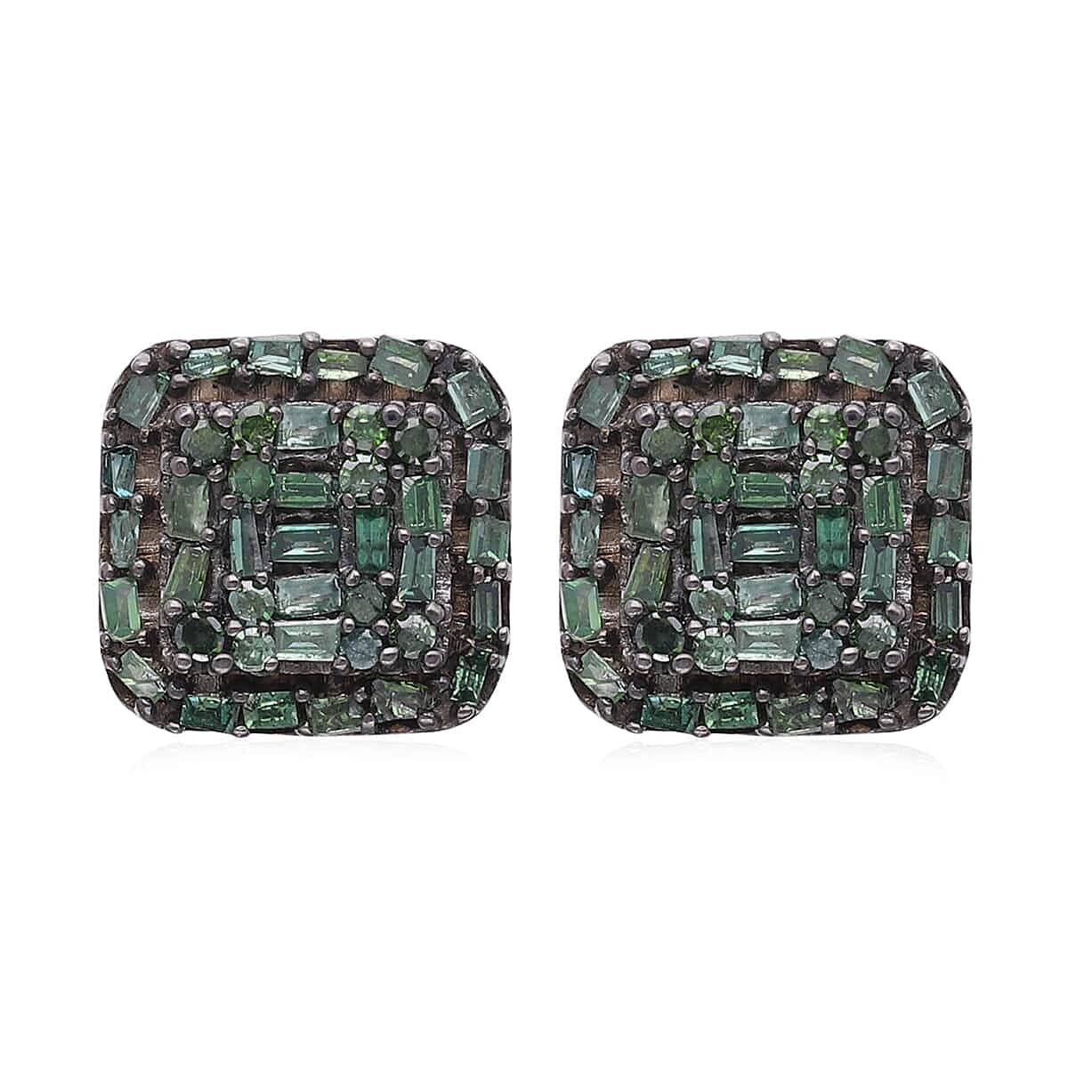Green Diamond Stud Earrings in Rhodium and Platinum Over Sterling Silver 0.60 ctw