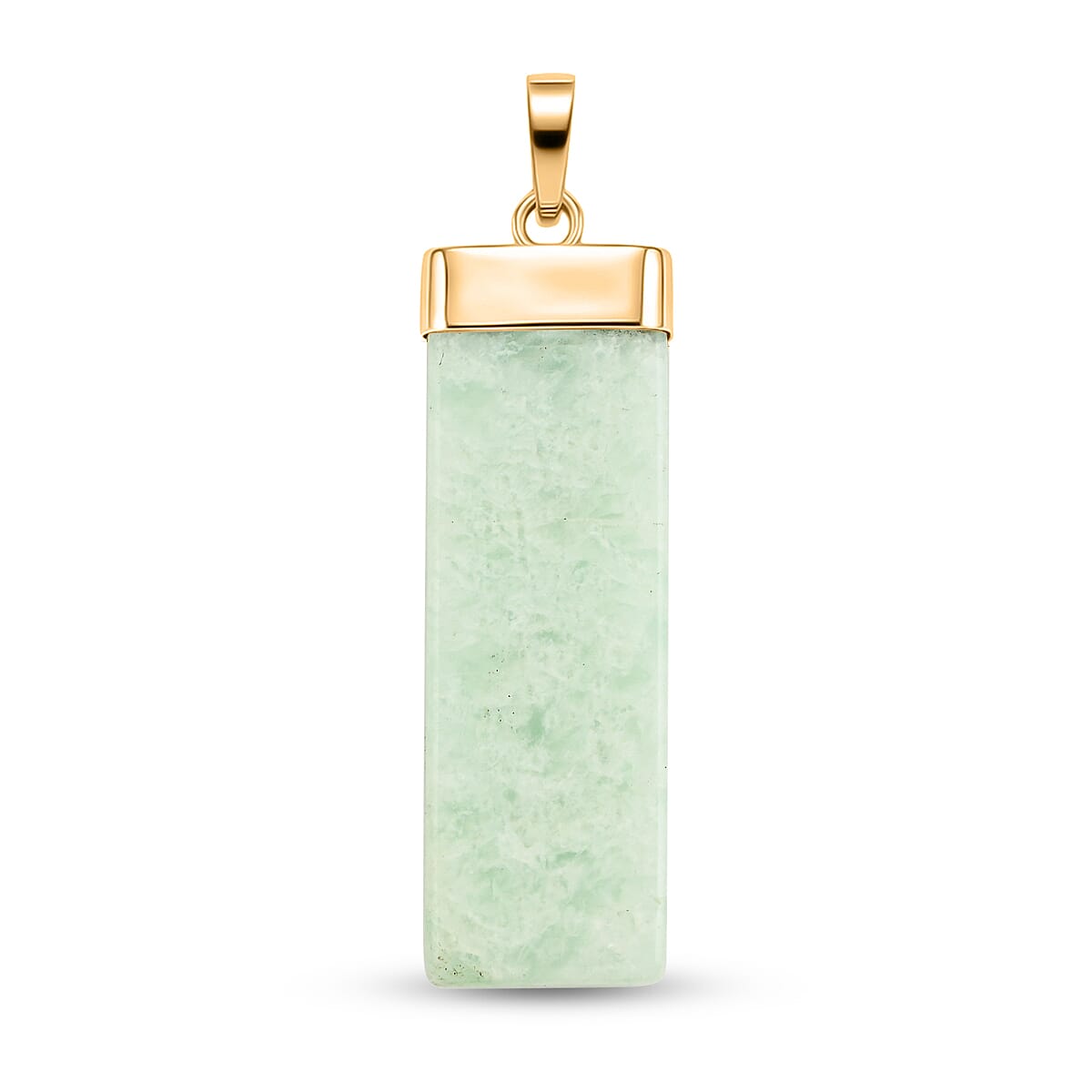 Green Jade 36.00 ctw Rectangle Pendant in Goldtone with Stainless Steel Necklace 20 Inches