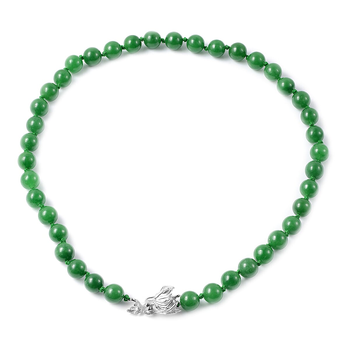 Green Jade and Natural Russian Diopside Necklace 20 Inches with Dragon Lock in Rhodium Over Sterling Silver 403.50