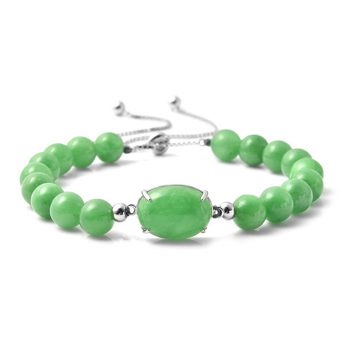 Green Jade Beaded Bolo Bracelet in Rhodium Over Sterling Silver 83.50 ctw