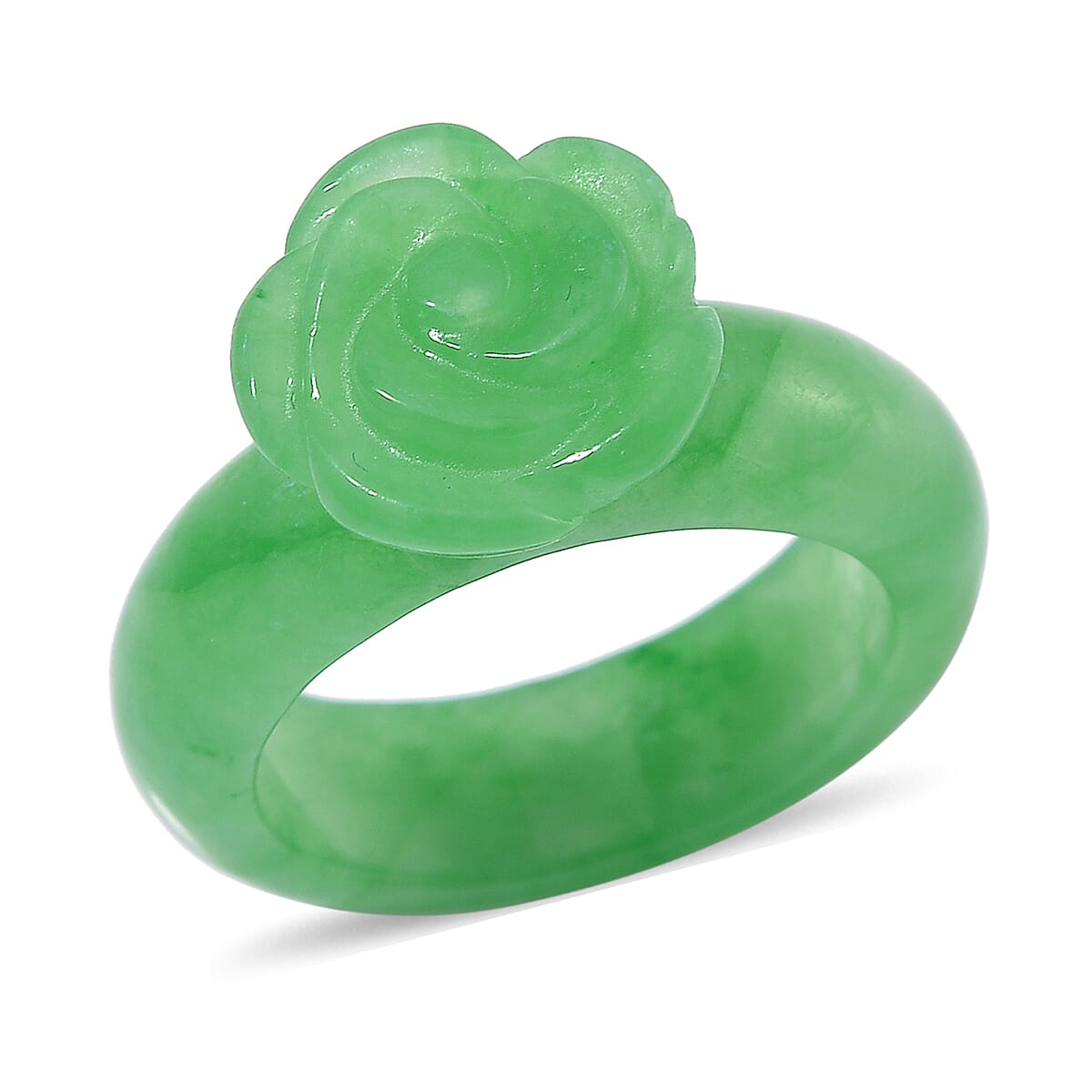 Green Jade (D) Carved Rose Flower 39.00 ctw Ring (Size 5.00)