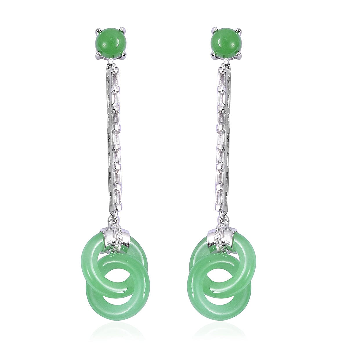 Green Jade (D) Carved, White Topaz Dangle Earrings in Sterling Silver 17.64 ctw