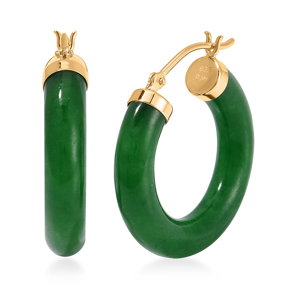 Green Jade (D) Hoop Earrings in 14K Yellow Gold Over Sterling Silver 16.00 ctw