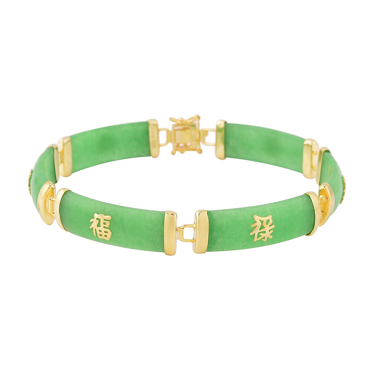 Green Jade (D) Station Bracelet, Green Jade Bracelet, 14K Yellow Gold Over Sterling Silver Bracelet, Symbols Bracelet, Silver Station Bracelet (7.25 In) 60.00 ctw