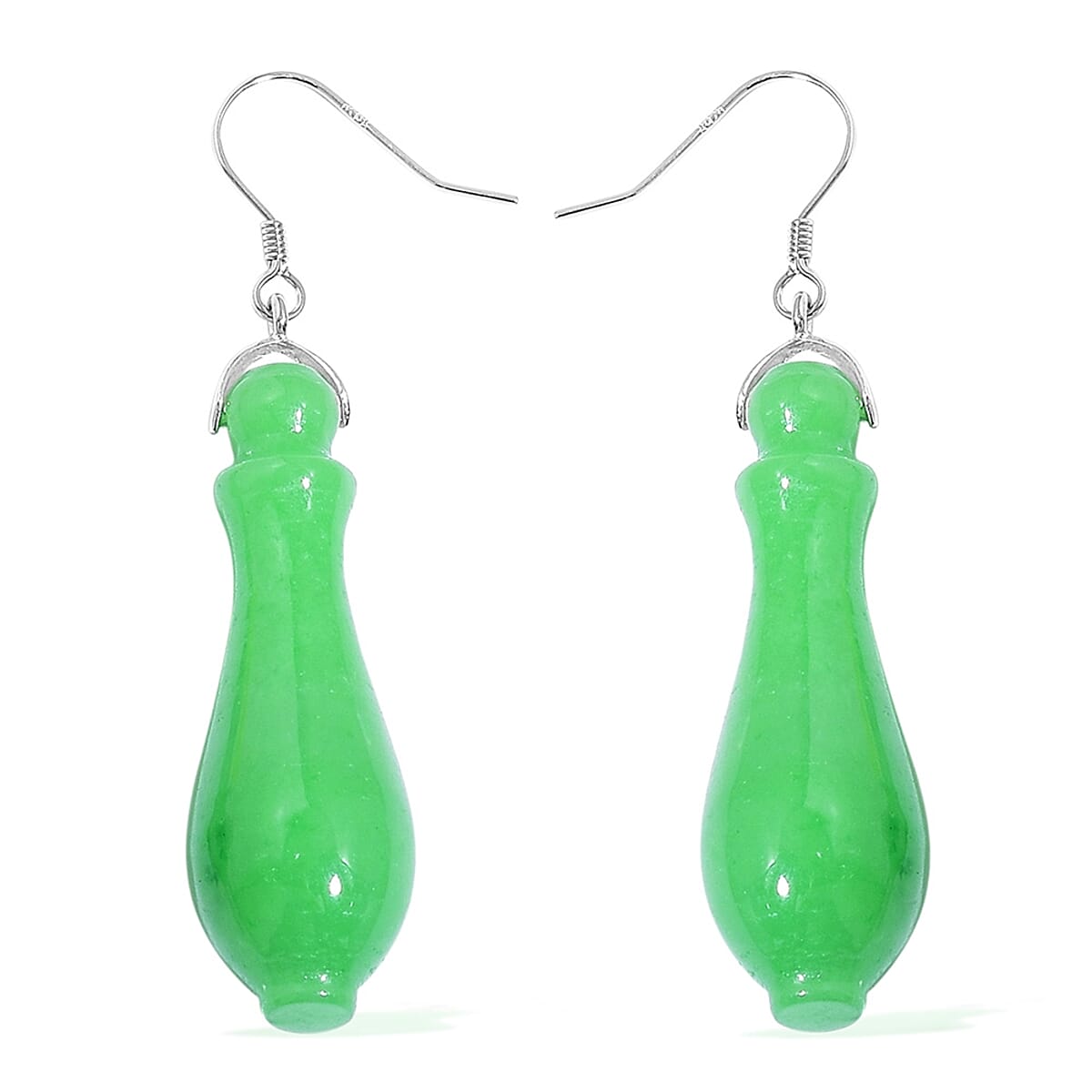Green Jade Dangle Earrings in Sterling Silver 83.50 ctw