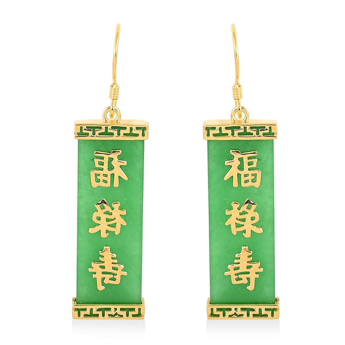 Green Jade Earrings in 14K Yellow Gold Over Sterling Silver 25.00 ctw